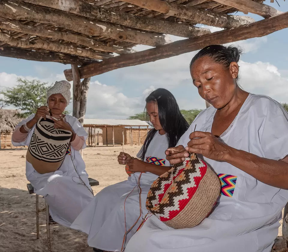 Estamos en Riohacha, Colombia, corazón de la Guajira, cerca a la comunidad Wayuu, a quienes consideramos guardianes de técnicas ancestrales de tejido a mano.