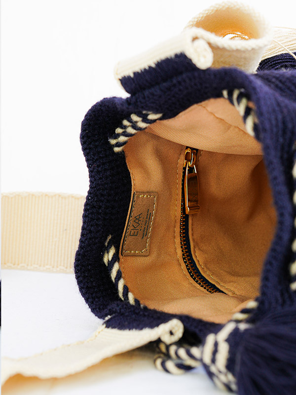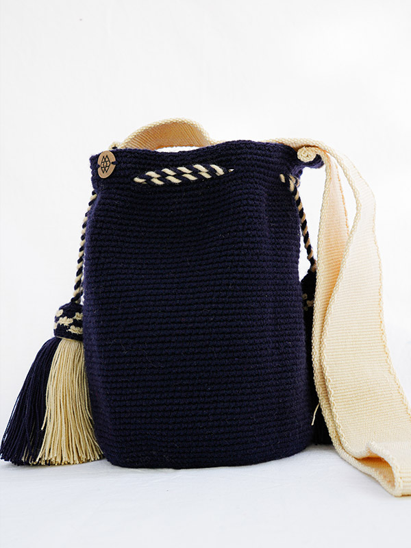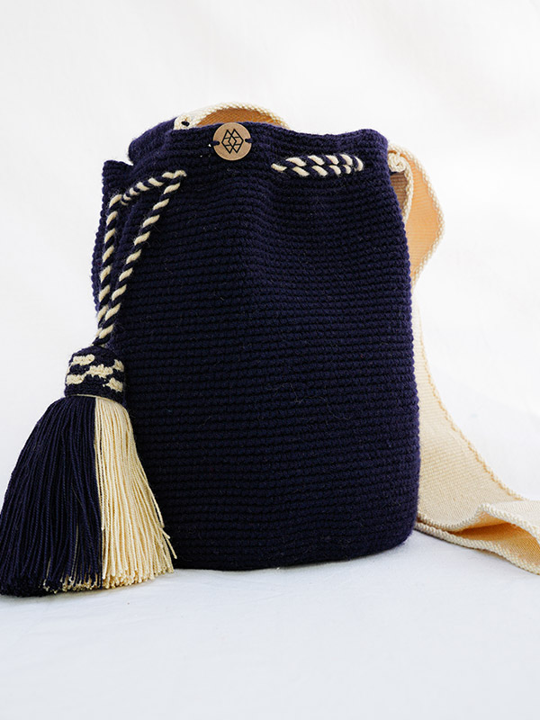 Mochila tejida a mano por indígenas wayuu, elaborada en un solo tono, con dos cordones que le permiten un cerrado rápido y muy seguro; adornada con terminaciones tejidas en sus campanas que realzan su belleza, tiene una cargadera paleteada. Es un producto versátil que permite varios usos, sin perder su esencia artesanal wayuu