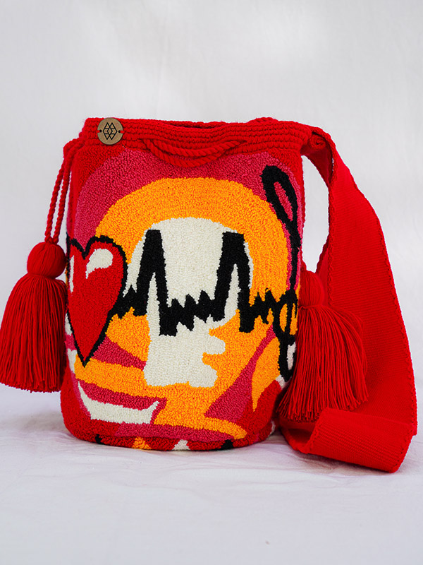 Esta creación es elaborada a mano por indígenas de la etnia wayuu y usa la técnica del tapizado o el puyado, mediante la utilización de una aguja mágica en puntada rusa; para elaborar este diseño se toma una tela especial y se dibuja sobre ella la imagen que se desea transmitir en la mochila, posteriormente se rellena con hilos de los colores escogidos, en esta técnica no hay límites en diseños y colores.