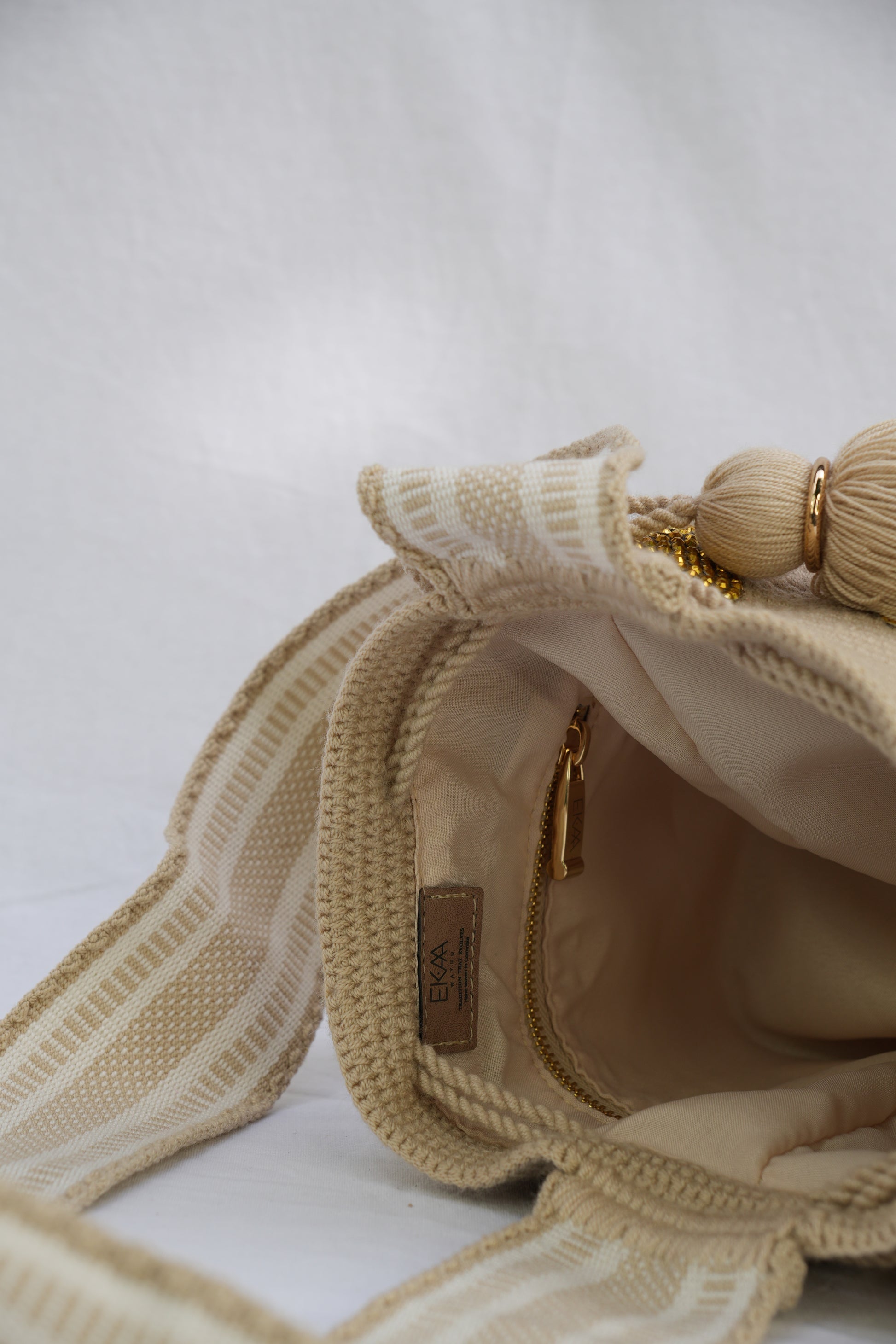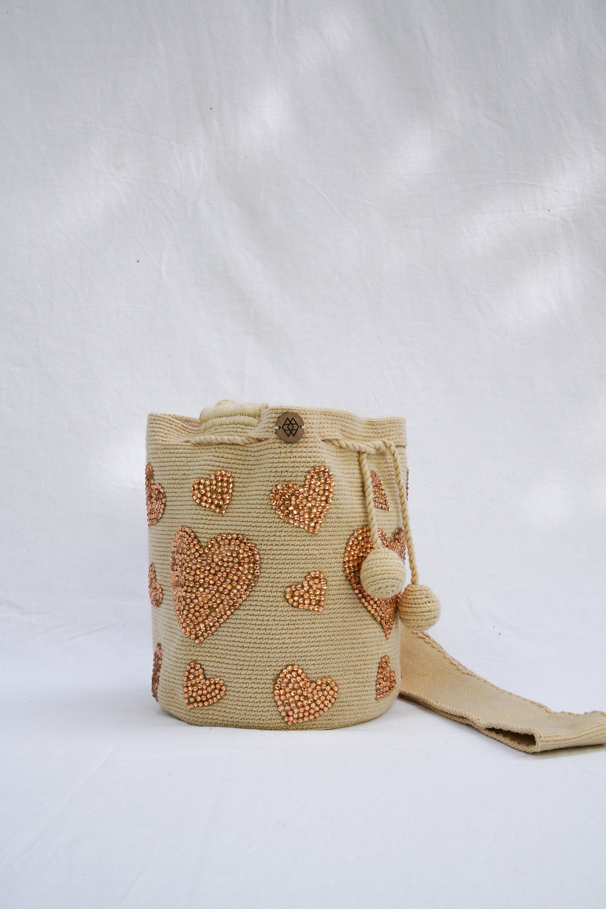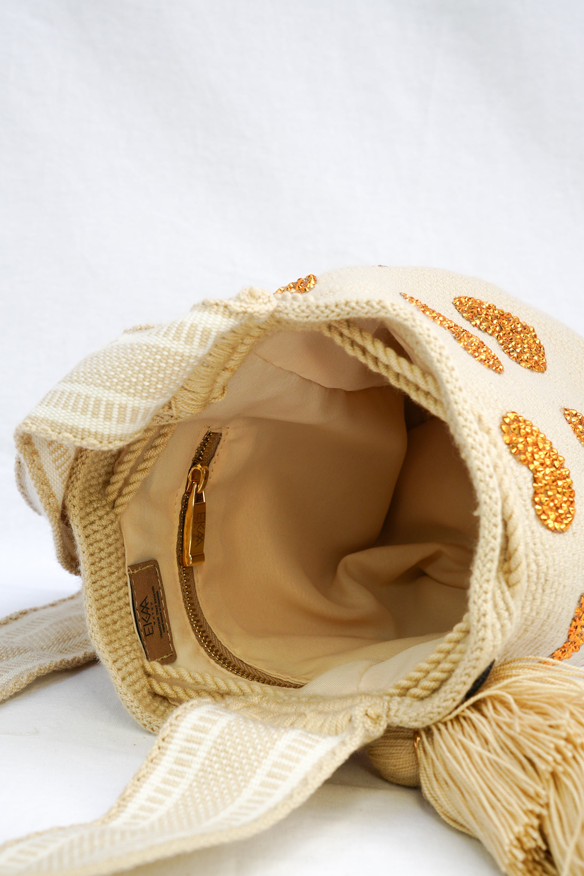 Este diseño es elaborado totalmente a mano por indígenas de la etnia wayuu, el arte del tejido se ha transmitido de generación en generación, conservando su riqueza y calidad.