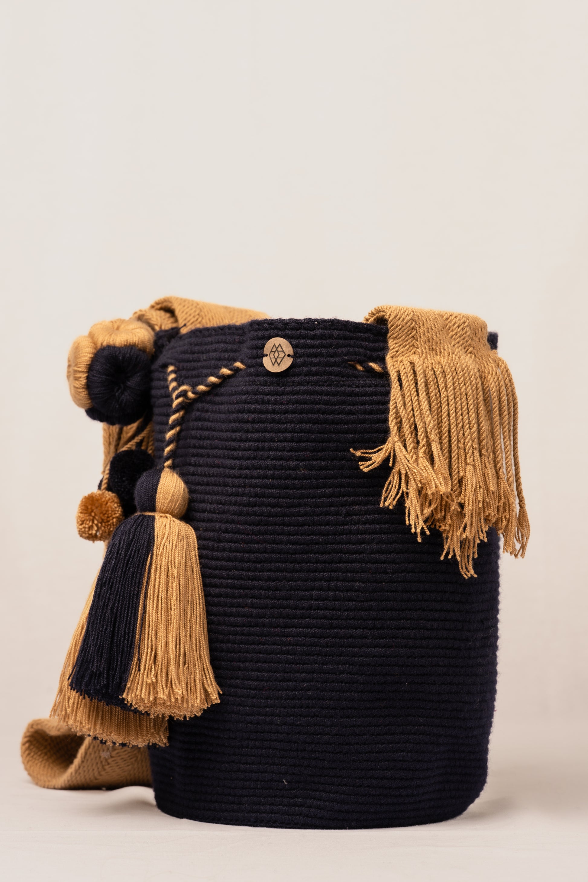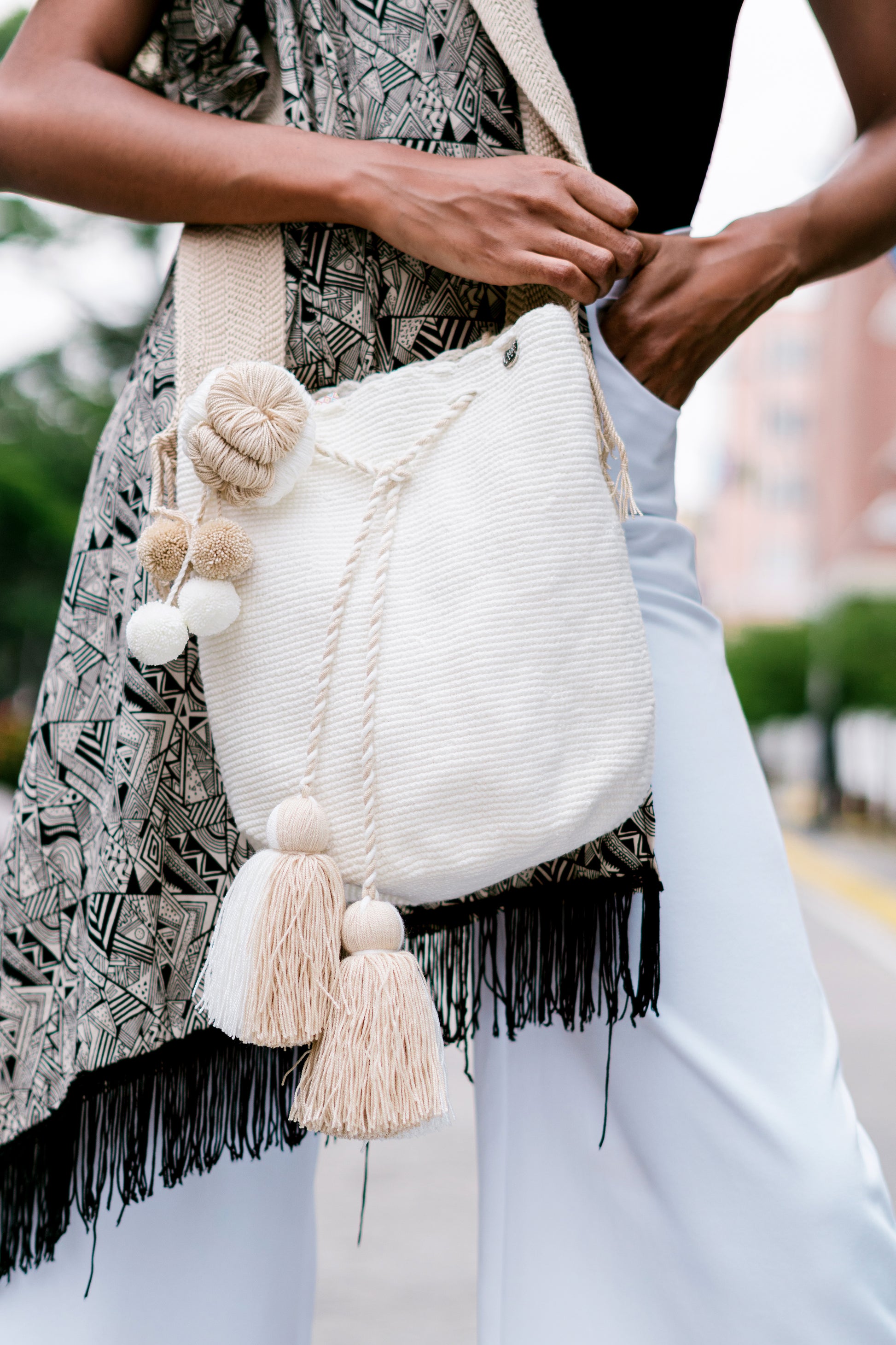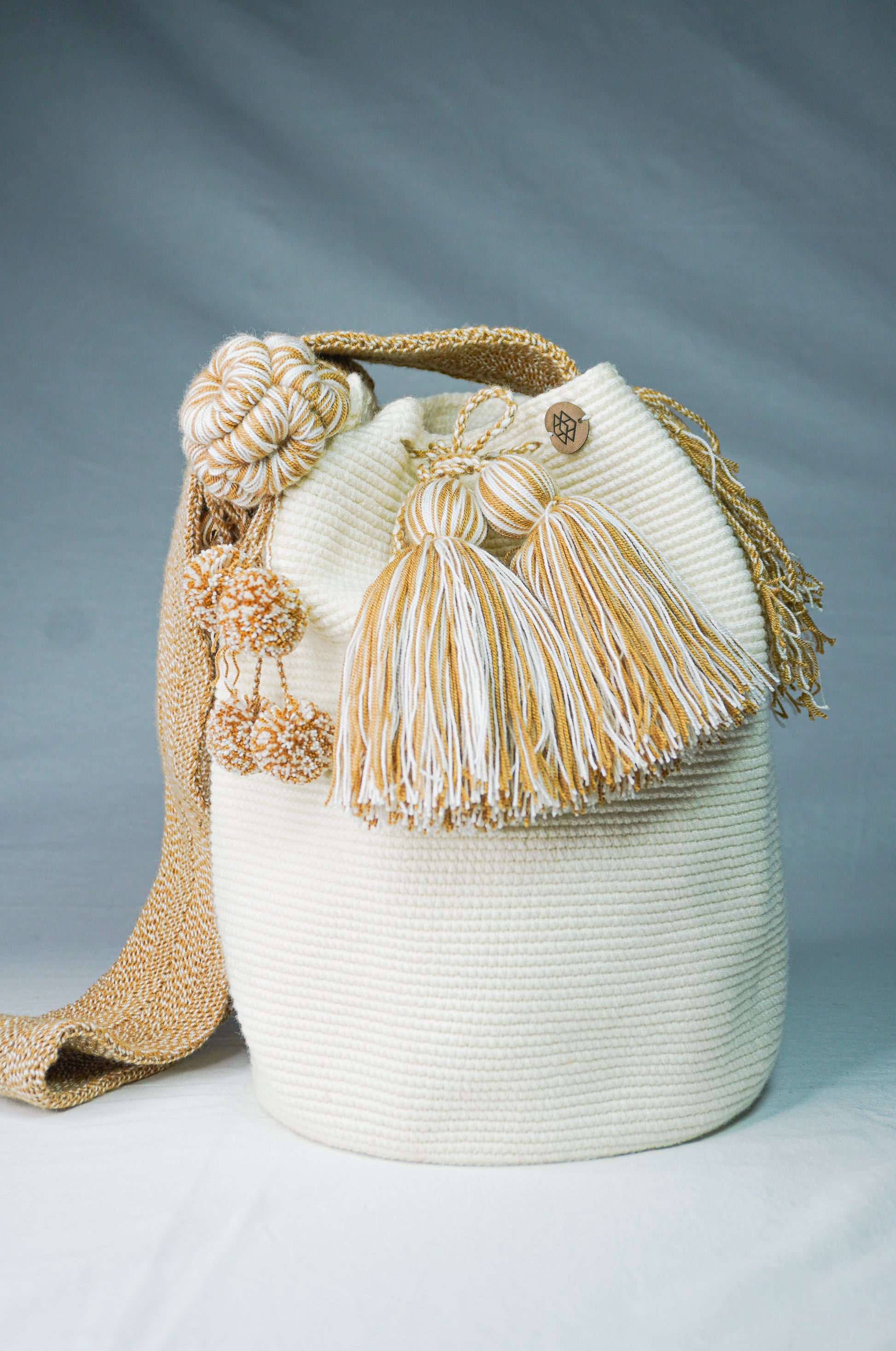 Mochila de un solo color, adornada con gaza multicolor que realza su belleza. puedes elegir la terminación del cordón, en borlas o campanas. Este diseño es elaborado totalmente a mano por indígenas de la etnia wayuu, el arte del tejido se ha transmitido de generación en generación, conservando su riqueza y calidad, el tiempo de manufactura tarda alrededor de 8-12 días. El material utilizado es hilo de algodón de crochet. Mediadas aproximadas: 28 CM X 28 CM cada mochila es única y hecha a mano, por lo tanto las medidas nunca son exactas.