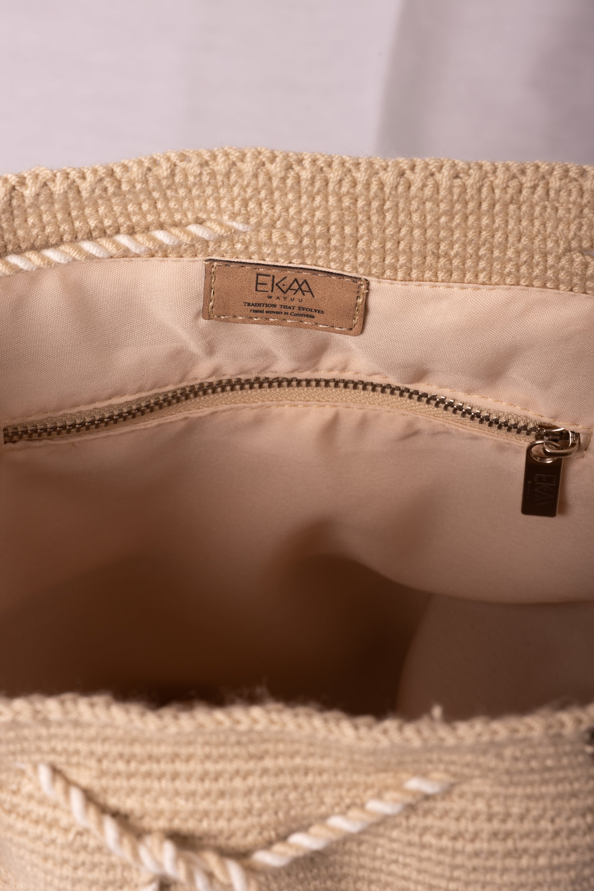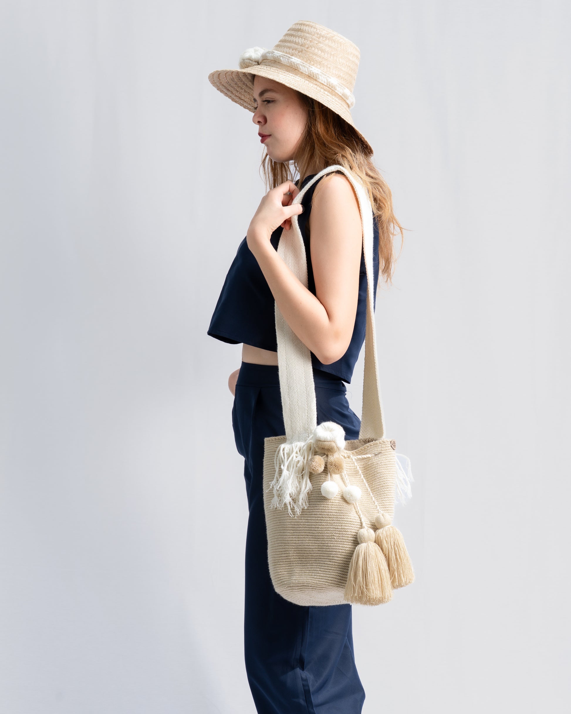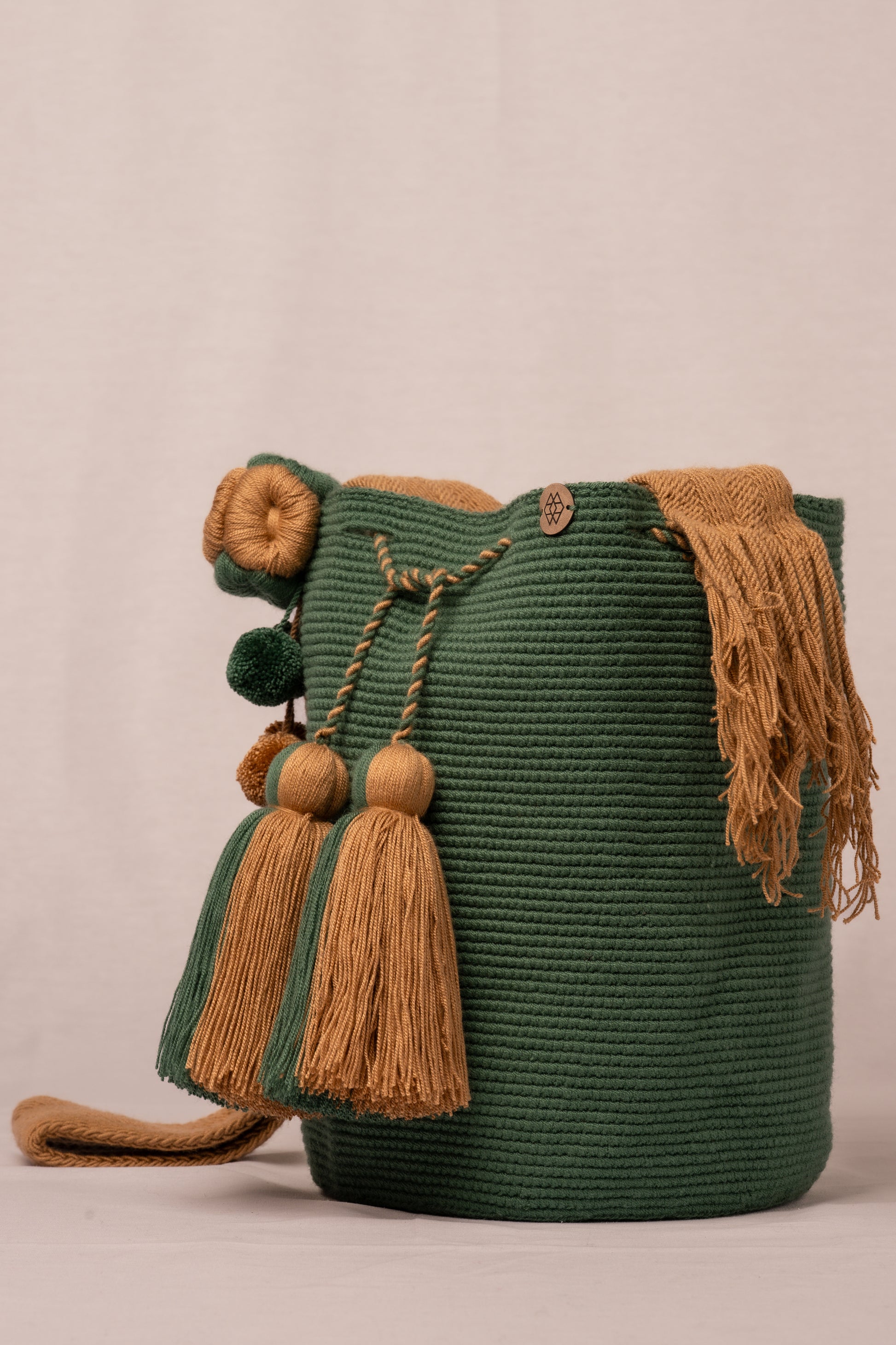 Mochila de un solo color, adornada con gaza multicolor que realza su belleza. puedes elegir la terminación del cordón, en borlas o campanas. Este diseño es elaborado totalmente a mano por indígenas de la etnia wayuu, el arte del tejido se ha transmitido de generación en generación, conservando su riqueza y calidad, el tiempo de manufactura tarda alrededor de 8-12 días. El material utilizado es hilo de algodón de crochet. Mediadas aproximadas: 28 CM X 28 CM cada mochila es única y hecha a mano, por lo tanto las medidas nunca son exactas.
